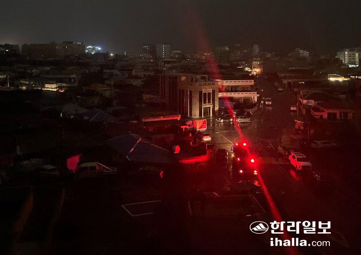 지난 13일 오후 8시21분쯤 제주시 조천읍 함덕리 일대 970가구에 정전이 발생해 주민들이 큰 불편을 겪었다. 독자 제공