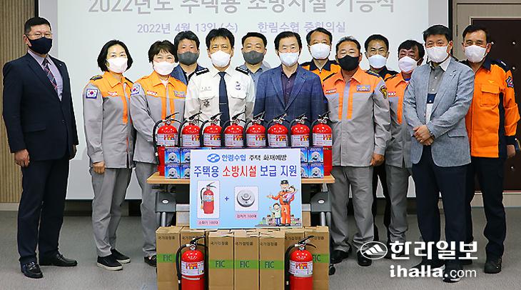 서부소방서(서장 문동원)와 한림수산업협동조합(조합장 김시준)은 지난 13일 한림수협에서 화재취약계층의 안전사각 지대 해소를 위한 주택용 소방시설 기증행사를 가졌다. 이번에 전달된 주택용 소방시설(소화기 100대, 단독경보형감지기 200개)은 한림, 금악남성, 비양전담 의용소방대를 통해 화재 취약계층에 보급하게 된다.