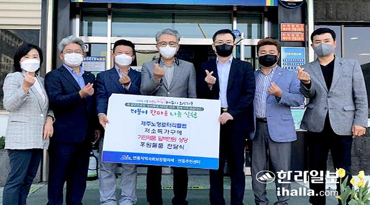 제주노형로타리클럽(회장 김성남)은 지난 13일 제주시 연동주민센터를 방문해 연동지역사회보장협의체(위원장 김상현)와 함께 최근 주거환경개선사업을 실시한 저소득가구에 100만원 상당의 가전제품을 전달했다.