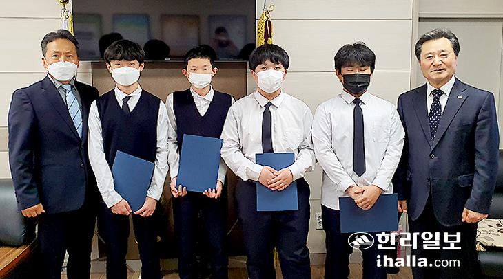 한림중학교(교장 김형희)는 지난 13일 교장실에서 5명의 학생에게 세원종합건설(주)이 지원하는 장학금을 전달했다. 세원종합건설 고용보 대표이사는 한림중 동문으로 장학금 지원 사업을 꾸준히 벌여왔다.