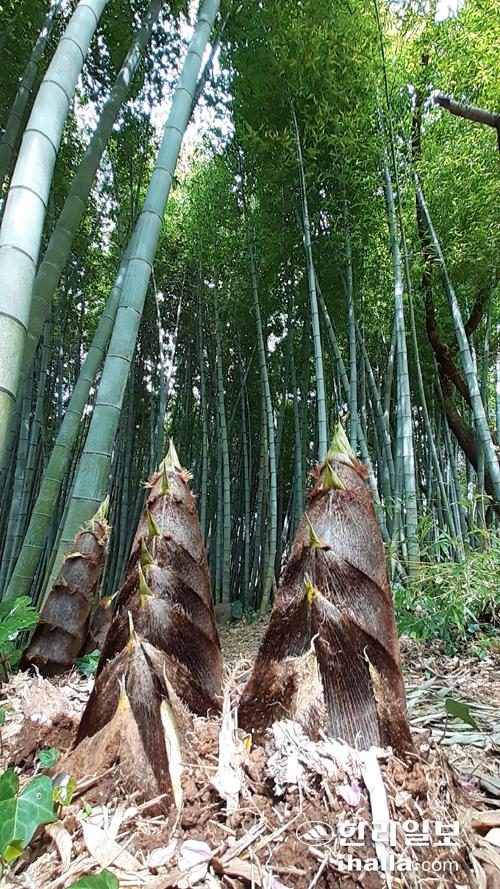 봄날씨가 이어진 17일 제주시 한라수목원내 대나무숲에서는 봄기운을 머금은 죽순이 눈길을 끌고 있다. 강희만기자