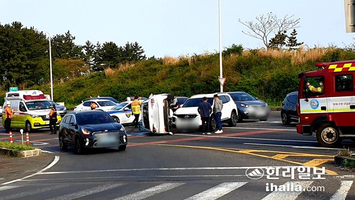 19일 오전 번영로 교통사고 현장. 박세인 기자