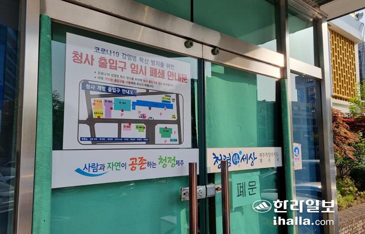 코로나19에 따라 임시 폐쇄됐던 제주시 청사 출입구가 이달 25일부터 전면 개방된다.사진=제주시