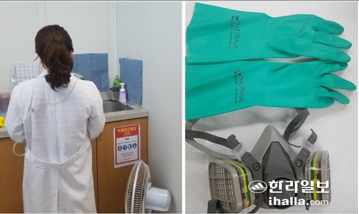 제주시 보건소 작업환경 측정(왼쪽)과 개선(오른쪽) 장면. 사진=제주시