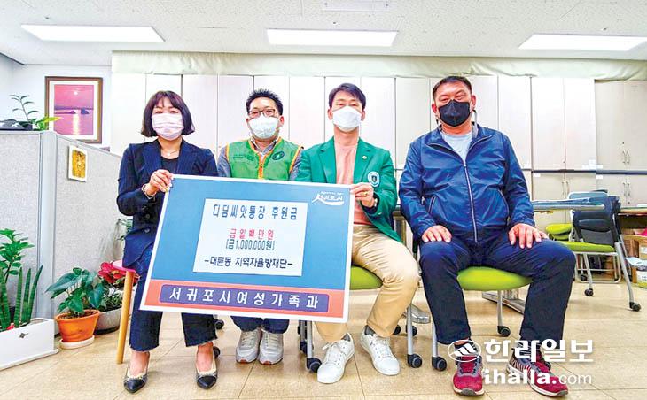 대륜동지역자율방재단(단장 이동엽)은 지난 22일, 서귀포시 여성가족과(과장 강현수)를 방문해 저소득층 아동들의 자립을 지원하는 디딤씨앗통장 후원금으로 사용해 달라면서 100만원을 전달했다. 이동엽 단장은 "아직까지 적립을 못하고 있는 저소득층 아동들을 위해 후원하게 됐다"고 후원 취지를 전했다.