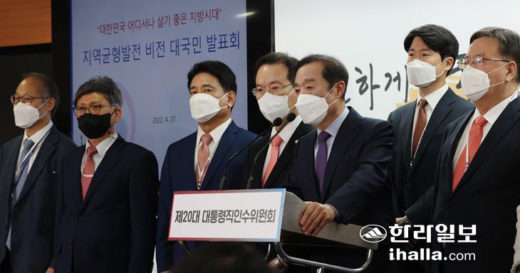 지역균형발전특위는 28일부터 대전을 시작으로 내달 9일까지 '지역균형발전 대국민보고회'를 각 지역별로 순회 개최할 예정이다. 제주 지역 보고회는 마지막 날인 9일 진행하는 것으로 내부 논의 중이다.