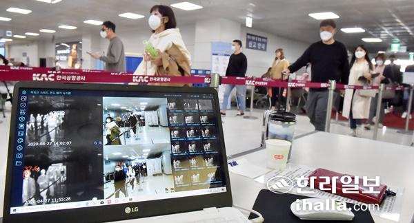 제주공항 도착대합실 발열검사. 한라일보DB