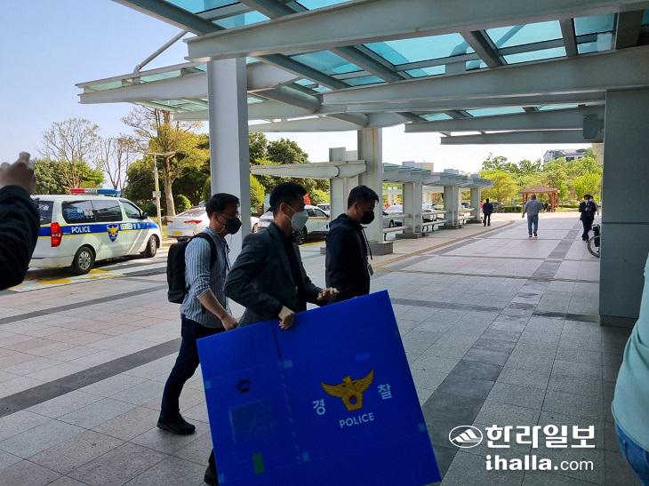 제주경찰청은 28일 제주대병원 내 총무과와 기록보관소 등에 대한 압수수색을 벌였다.
