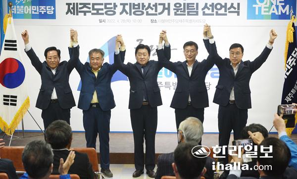 더불어민주당 제주도당은 28일 도당 당사에서 지방선거 원팀 선언식을 개최했다. 이상국기자