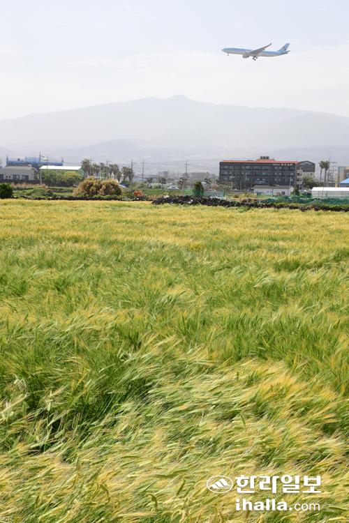 완연한 봄 날씨를 보인 28일 제주시 도두동의 한 보리밭이 황금빛으로 물들고 있다. 강희만기자