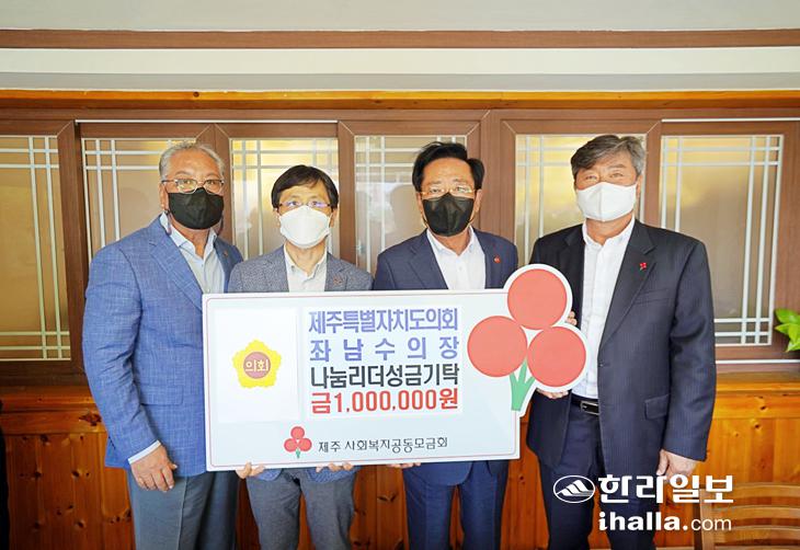 제주도의회 좌남수 의장은 지난달 28일 성금 100만원을 제주사회복지공동모금회(회장 강지언)에 기탁하며 나눔문화 확산에 앞장서는 제주 나눔리더로 가입했다.