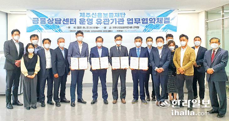 제주신용보증재단(이사장 오인택)은 지난달 27일 4월 초 개설한 금융상담센터의 효율적인 운영을 위해 협력기관인 대한법률구조공공단 제주지부(지부장 최보영), 신용회복위원회 제주지부(지부장 강원석), 김강일 법무사 등과 업무협약을 체결했다.