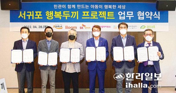 서귀포시는 최근 디아넥스호텔에서 행복얼라인스, 일룸, SK렌터카, 제주사회적경제지원센터, 서귀포오름지역자활센터와 함께 취약계층 아동 80명에게 도시락을 지원하는 '행복두끼 프로젝트' 추진에 따른 협약을 체결했다고 1일 밝혔다.