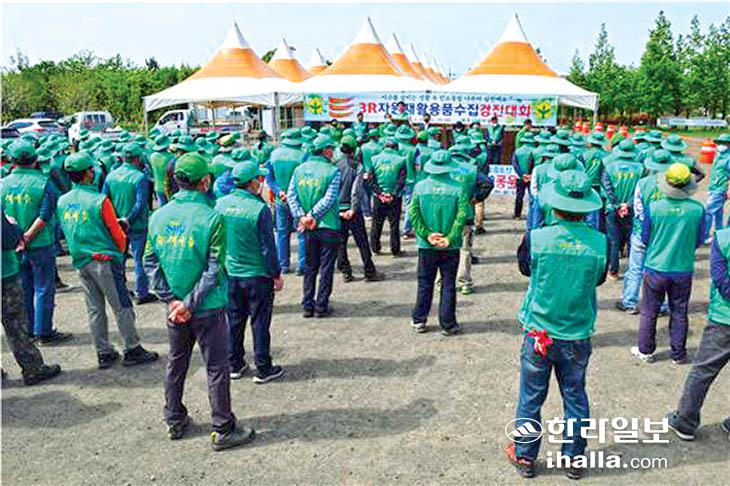 제주시새마을회(회장 박경호)는 지난달 28일 제주시민복지타운에서 각종 폐자원을 수집해 재활용하는 범시민 자원순환 실천 분위기 조성을 위한 3R 자원재활용품 수집 운동과 생명운동에 노력할 것을 다짐하는 대회를 개최했다.