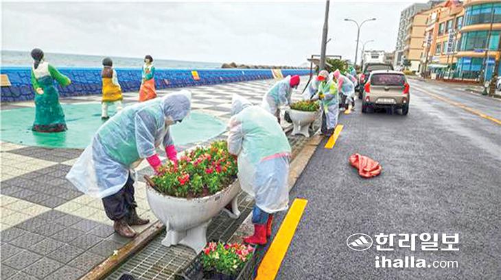 제주시 도두동(동장 문정희)과 새마을부녀회(회장 김병화)는 지난달 29일 추억愛거리 등 3개소에서 아름다운 꽃길 가꾸기를 전개했다. 이날 새마을부녀회원 25여명은 금어초 등 계절화 7000본을 식재했다.