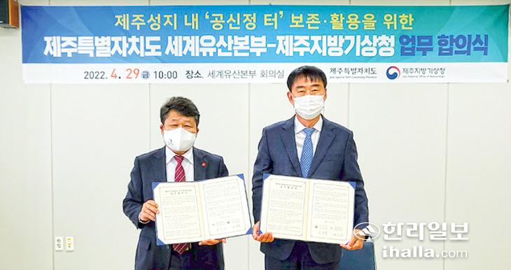 합의 내용은 ▷제주도 근대기상 및 제주역사문화와의 연계 홍보 ▷공신정 터 보존·정비·관리 및 연계 활용사업 추진 ▷기상·기후업무의 제주지역 연계사업 적극 홍보 등이다. 양 기관은 공신정 터를 정비.활용해 제주문화유산 가치 증진을 위해 협력할 것을 약속했다.