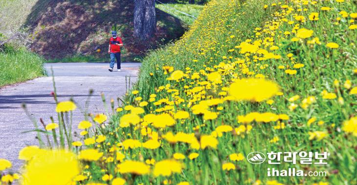 1일 제주시 애월읍 항파두리 항몽유적지 토성에 서양 민들레가 만개해 눈길을 사로잡고 있다. 이상국기자