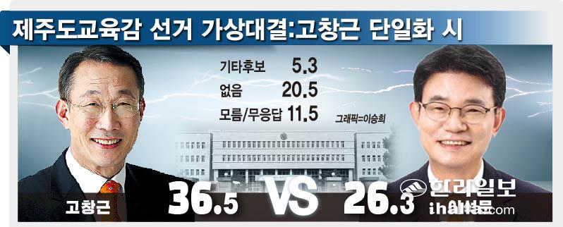 한편 고창근 예비후보와 김광수 예비후보는 이번 여론조사 결과를 비롯해 같은날 발표된 제주MBC·제주일보·제주CBS·제주의소리 언론 4사, KBS 단독 여론조사 결과를 토대로 3일 단일후보를 결정할 예정이다.