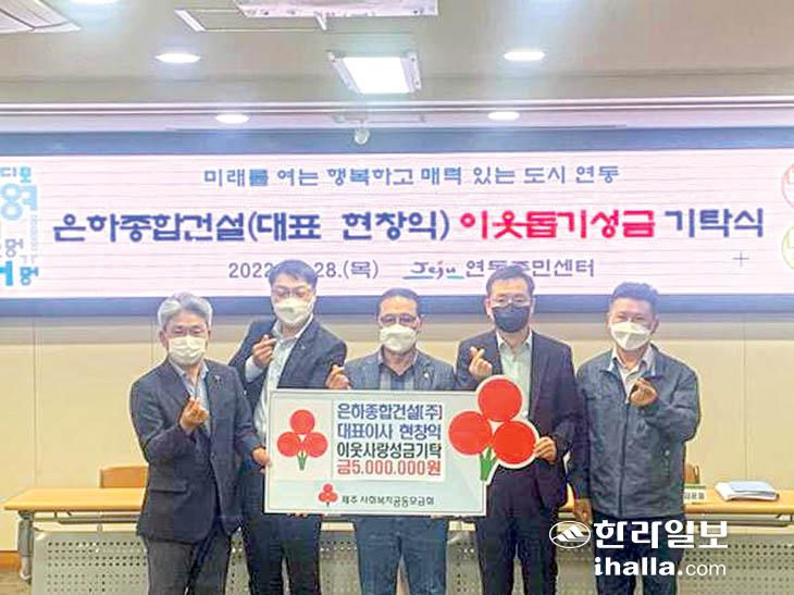 (주)은하종합건설(대표이사 현창익)은 최근 제주시 연동에 주거 환경 개선과 생계 지원 등이 필요한 취약계층 가구를 위한 지정 기탁금 500만원을 후원했다.