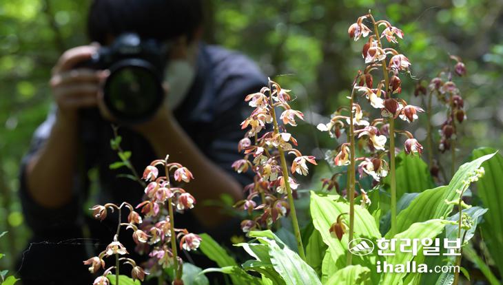 3일 서귀포시 성산읍 제주자연생태공원 내 궁대악오름에 새우란이 화사한 꽃망울을 터뜨려 눈길을 끌고 있다. 강희만기자