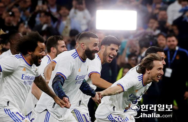 결승 진출을 확정한 뒤 기뻐하는 레알 마드리드 선수들.연합뉴스