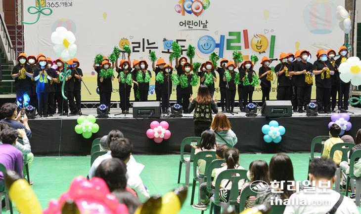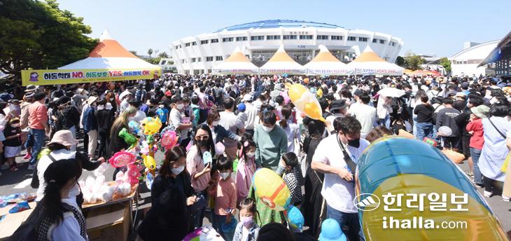 5일 한라체육관에서 제주시가 주최하고 제주시어린이집연합회가 주관하는 제100회 어린이날 기념 행사가 열리고 있다. 사진=이상국기자