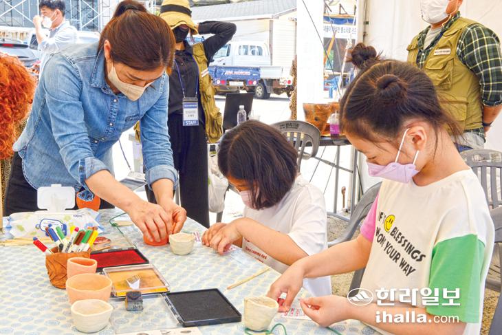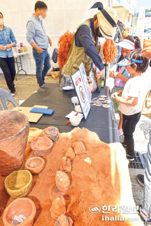 제주고고학연구소 선사유적 체험 부스. 이상국기자