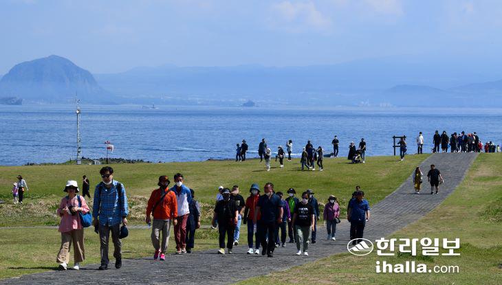 지난 7일 대한민국 최남단 마라도에 많은 관광객들이 찾아 탐방에 나서고 있다. 강희만기자