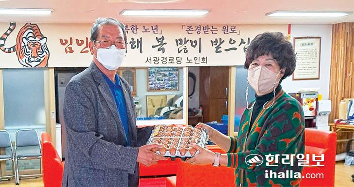 제주시 삼도1동남서광마을회(회장 강순화)는 지난 6일 가정의 달을 맞아 서광경로당을 방문해 계란 50판(50만원 상당)을 전달했다.