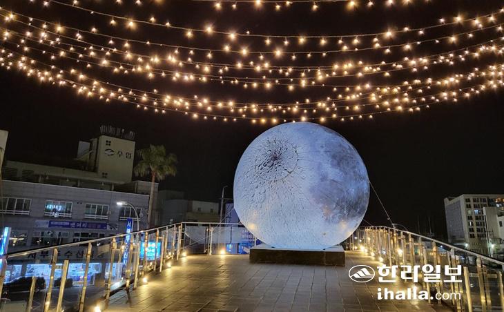 산지천 산포광장 내 전망대에 설치된 슈퍼문 포토존. 사진=건입동주민센터