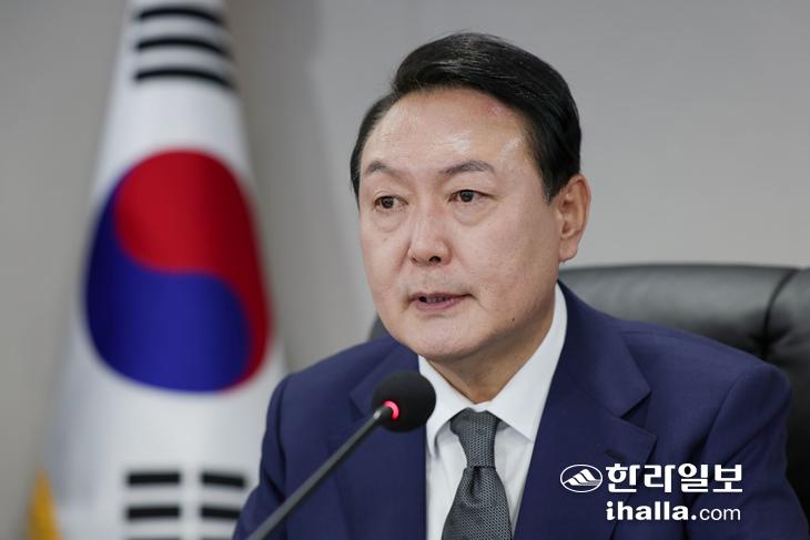윤석열 대통령이 10일 0시 서울 용산 대통령실 국가위기관리센터 상황실에서 국군통수권 이양 및 북한 군사동향 등의 보고를 받으며 집무를 시작하고 있다. 연합뉴스