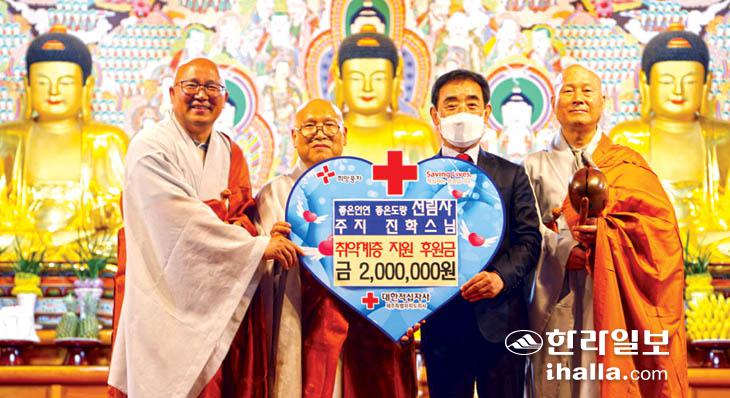 좋은인연 좋은도량 제주 선림사(주지 진학스님)는 지난 7일 선림사 대법당에서 대한적십자사제주특별자치도지사(회장 오홍식)에 취약계층 지원을 위한 후원금 200만원을 기탁했다.