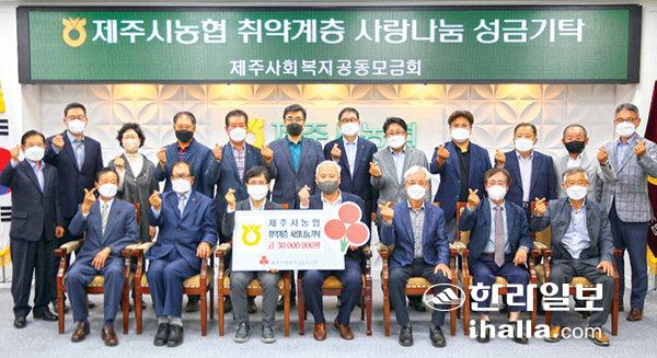 제주시농협(조합장 고봉주)은 10일 제주시농협 회의실에서 사랑나눔성금 3000만원을 제주사회복지공동모금회(회장 강지언)에 기탁했다.