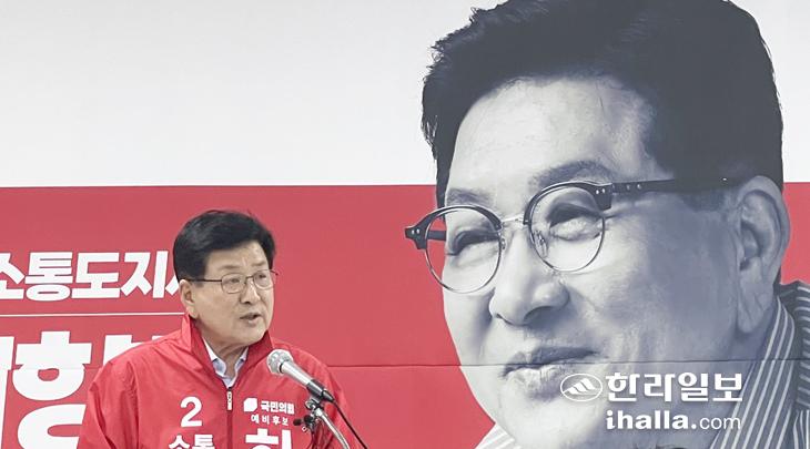 11일 선거캠프에서 회견하는 국민의힘 허향진 제주지사 후보.
