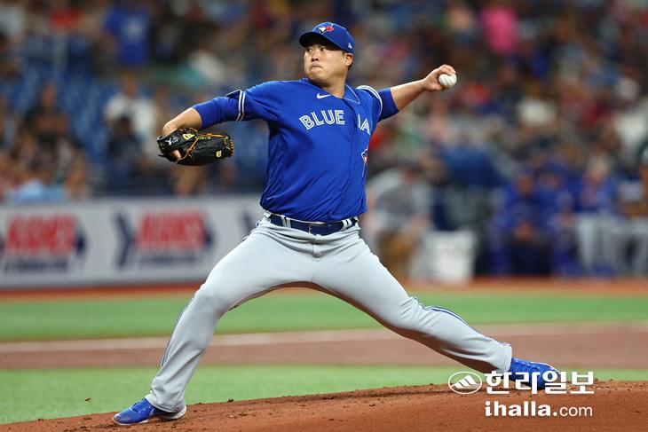 15일 탬파베이 상대로 복귀전에서 투구를 펼치고 있는 토론토 류현진. 연합뉴스