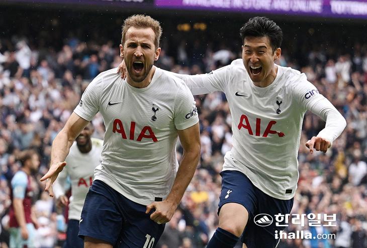 번리전 PK 결승골 넣은 케인과 기뻐하는 손흥민. 연합뉴스