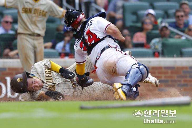 애틀란타전 연장에서 김하성의 과감한 홈 질주와 득점. 연합뉴스
