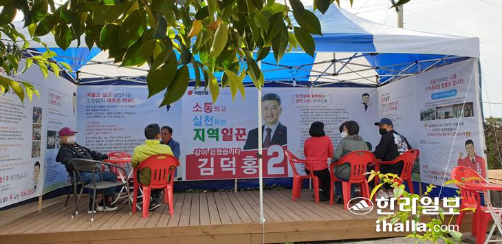 김덕홍 후보의 '공약 천막 사랑방'. 사진=선거사무소 제공