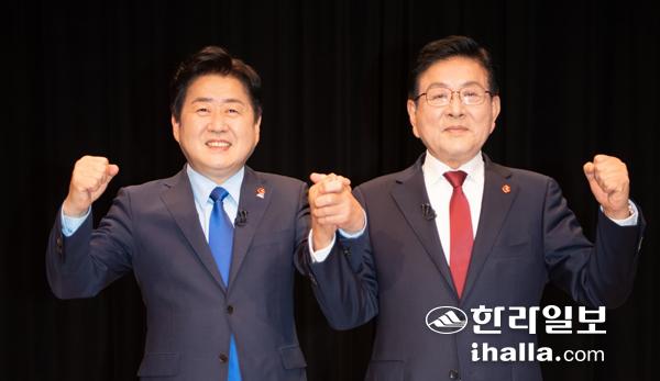 한라일보와 제민일보, JIBS제주방송 등 제주지역 언론 3사는 16일 JIBS제주방송에서 더불어민주당 오영훈·국민의힘 허향진 후보 등 제주도지사 후보 초청토론회를 개최했다.