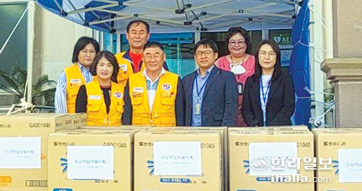 국제라이온스협회 354-G(제주)지구 한라라이온스클럽 김성은 취임회장은 지난 13일 메종글래드 제주에서 한라라이온스클럽 창립 제32주년 기념식 및 회장 이·취임식 행사를 갖고 사랑의 쌀 900㎏을 제주사회복지공동모금회(회장 강지언)에 기탁했다.
