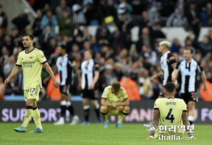 뉴캐슬전 패배에 아쉬워하는 아스널 선수들. 연합뉴스