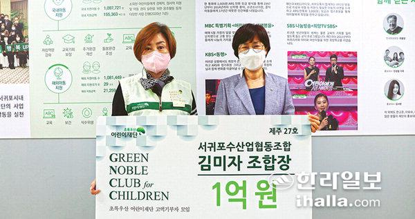 김미자 서귀포수협 조합장이 지난 16일 초록우산어린이재단 고액기부자 모임인 그린노블클럽에 제주 27호 회원으로 가입했다.