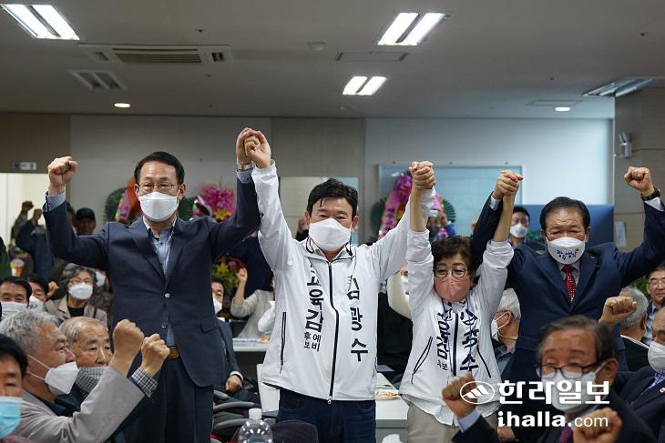김광수 제주도교육감 후보는 지난 20일 제주시 노형동 소재 선거사무소에서 선거대책위원회 발대식을 개최했다. 사진=김광수 후보 캠프