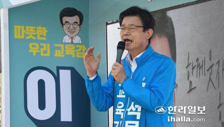 이석문 후보는 22일 제주시민속오일시장에서 집중 유세를 전개했다. 강희만기자