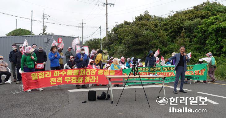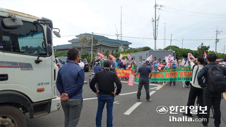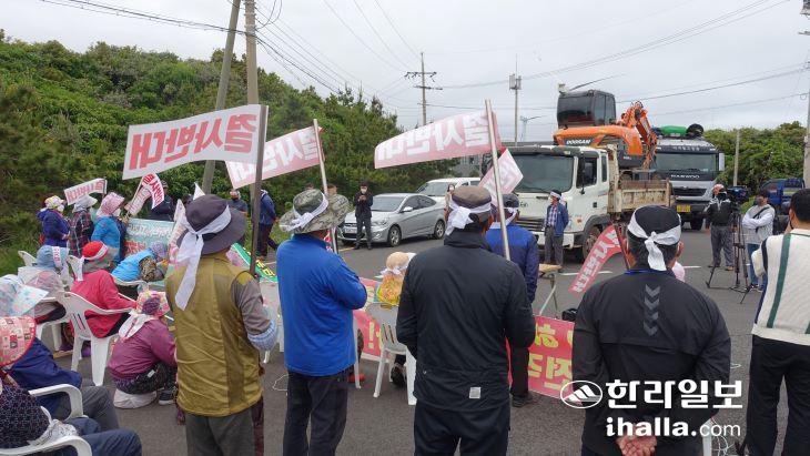 26일 제주동부하수처리장 증설 공사를 위한 자재 반입이 시도됐지만 주민들의 격렬한 반발로 무산됐다. 김도영기자