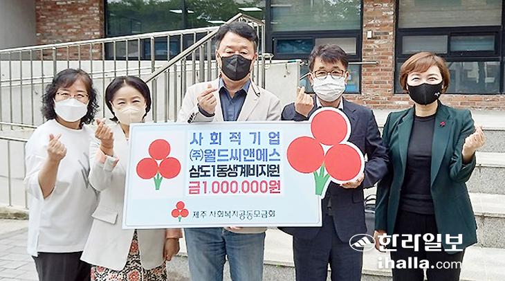 주식회사 월드씨앤에스(대표 김용광)는 26일 제주시 삼도1동 관내에 거주하는 어려운 이웃을 위해 써달라며 100만원을 기탁했다. 이날 기탁된 성금은 삼도1동 저소득층 생계비로 지원될 예정이다.