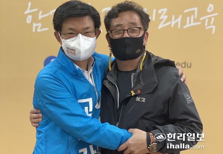 직업계고 현장실습 피해자 가족 모임과 이석문 후보가 정책협약을 맺고 있다. 사진=이석문 후보 캠프 제공