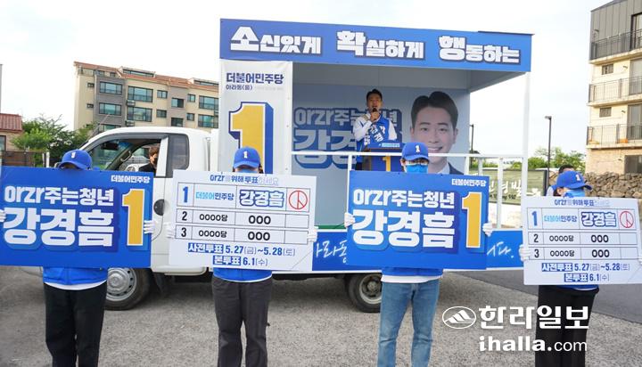 더불어민주당 강경흠(28) 제주도의원 후보(제주시 아라동 을 선거구)는 지난 26일 영평동에서 총력 유세를 갖고 막바지 세몰이에 나섰다고 밝혔다.