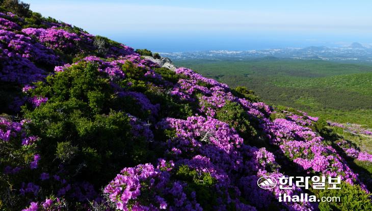 지난 28일 한라산 영실등반로 일대에 만개한 산철쭉이 장관을 이뤄 등반객들에게 색다른 풍경을 선사하고 있다. 사진=난대아열대산림연구소 제공