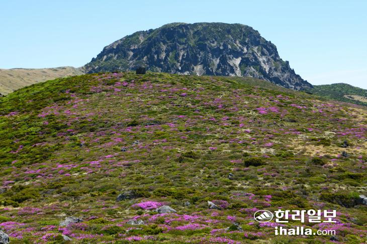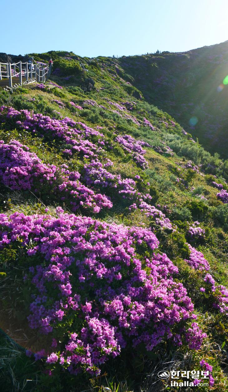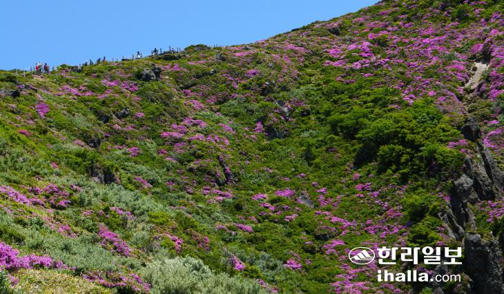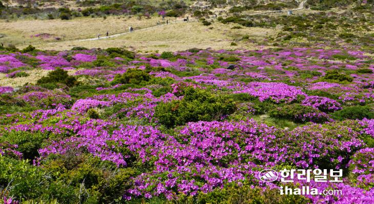 지난 28일 한라산 영실등반로 일대에 만개한 산철쭉이 장관을 이뤄 등반객들에게 색다른 풍경을 선사하고 있다. 사진=난대아열대산림연구소 제공